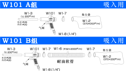 气动吸尘枪W101:擅长吸入,吹跑,搬运等多项使用功能。